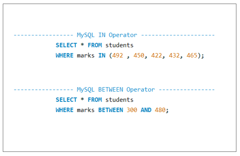 How to use MySQL IN and BETWEEN Operator? MySQL IN and BETWEEN we can use in Where condition to get the required data based on