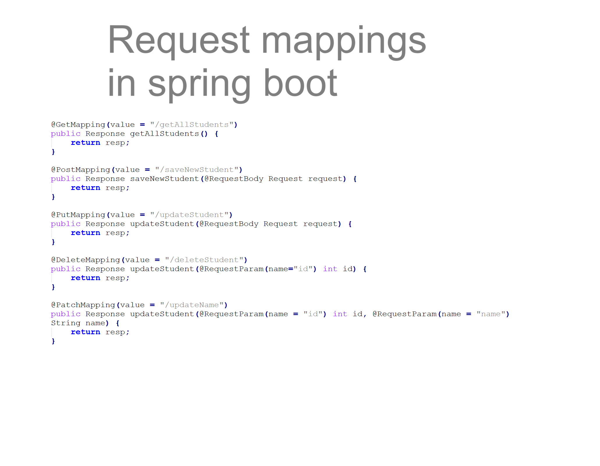 What are the different types of request mappings in Spring Boot? We have seen how to start with spring boot in earlier. In this blog,