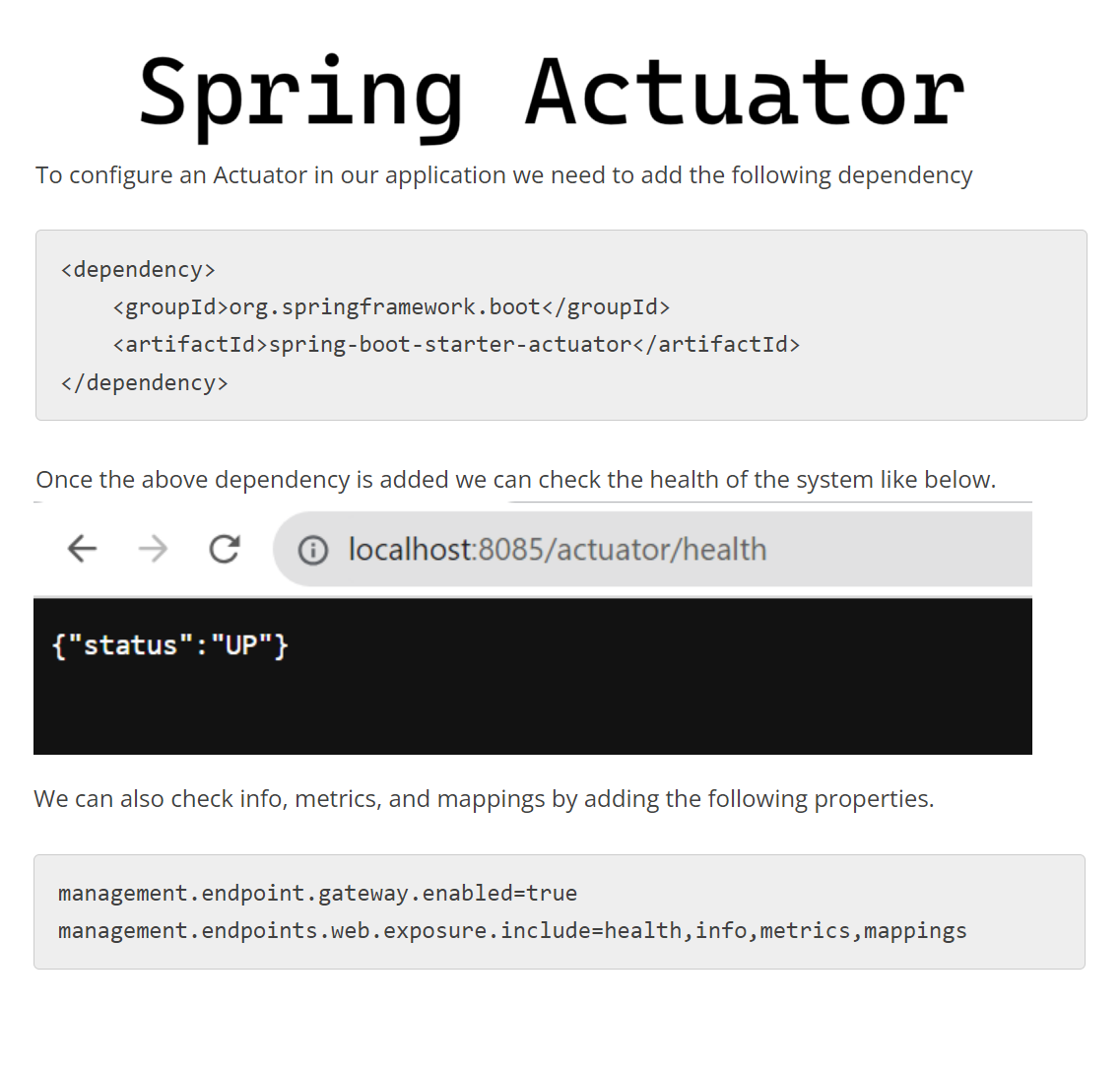 What is a Spring Actuator? The Spring Actuator is used to monitor and manage the Spring web application. We can use it to monitor and