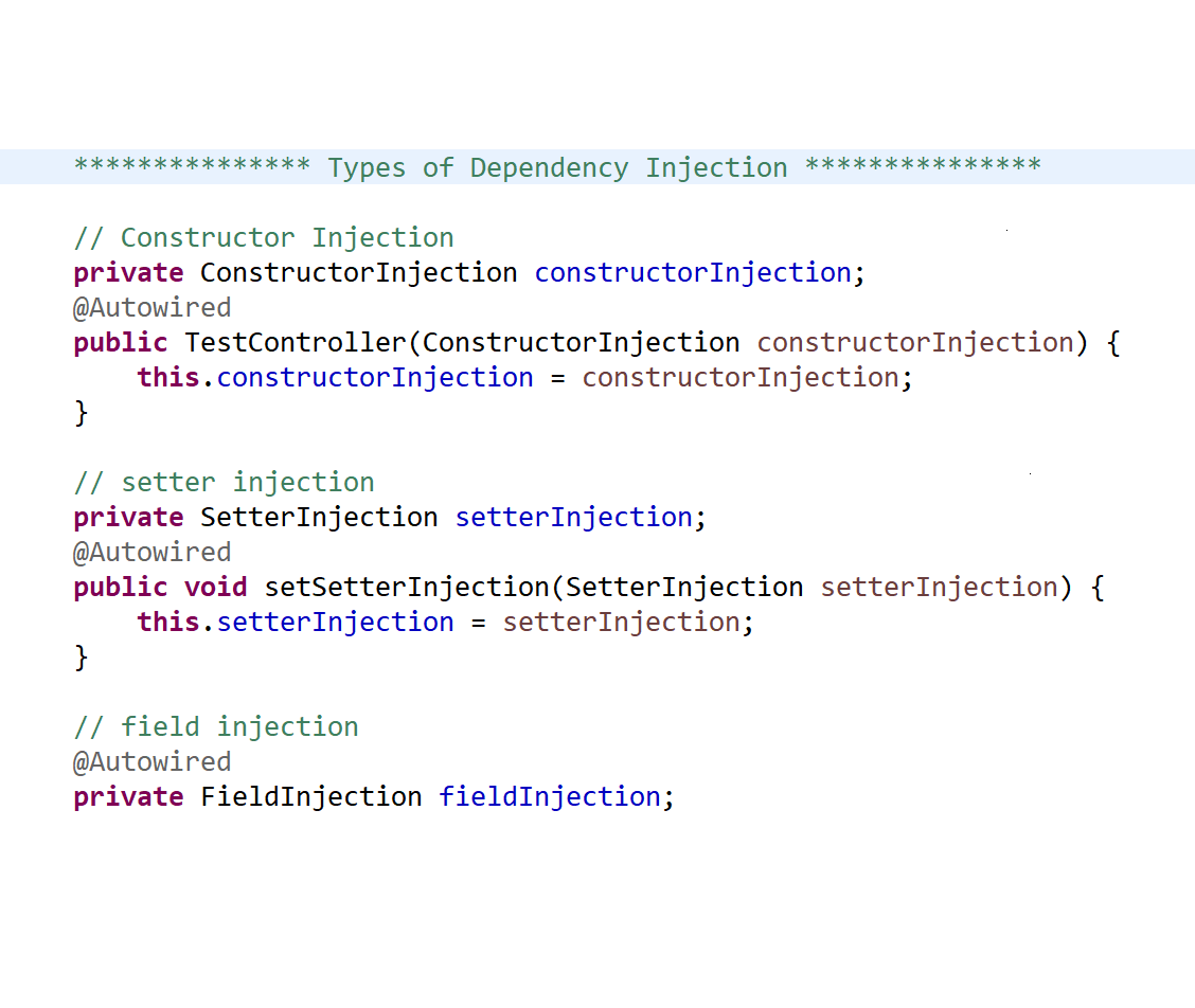 What is Dependency Injection (DI) in Spring? Dependency injection (DI) is a design pattern that promotes loose coupling between classes by injecting dependencies from outside