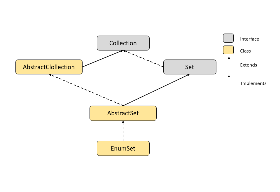An EnumSet in Java is a specialized Set collection for enum classes. It extends from AbstractSet and is available in java.util package. All of the