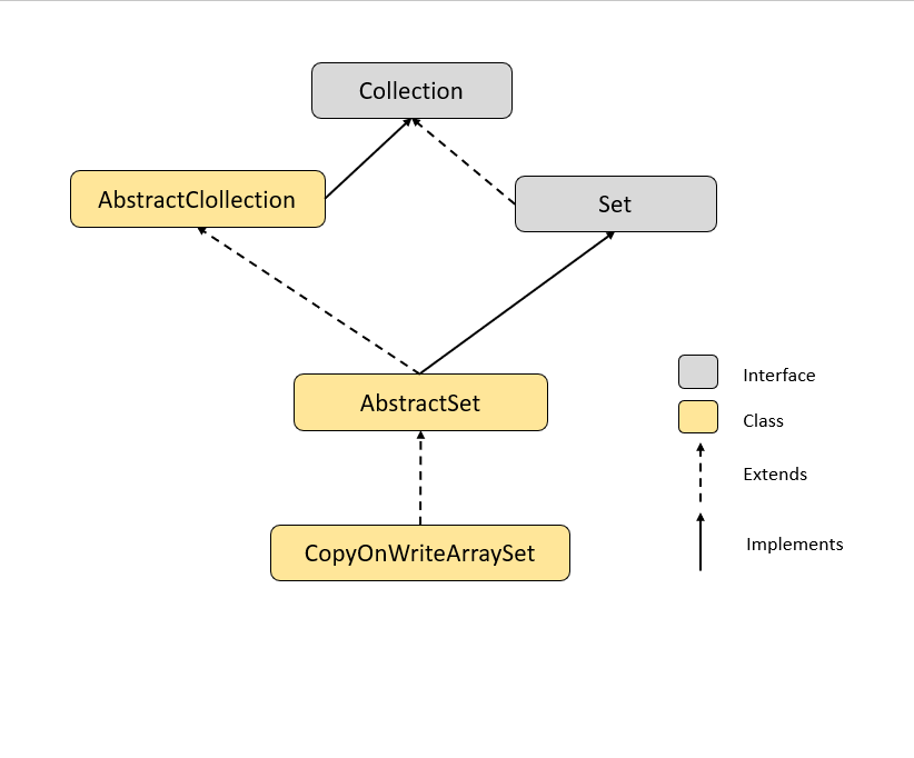 CopyOnWriteArraySet in java internally uses CopyOnWriteArrayList. This is thread-safe version of set. CopyOnWriteArraySet in java is used in java where we need to update the
